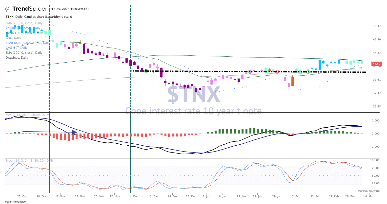 $TNX, Daily ($TNX)